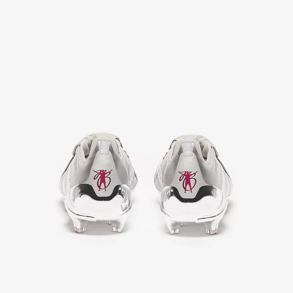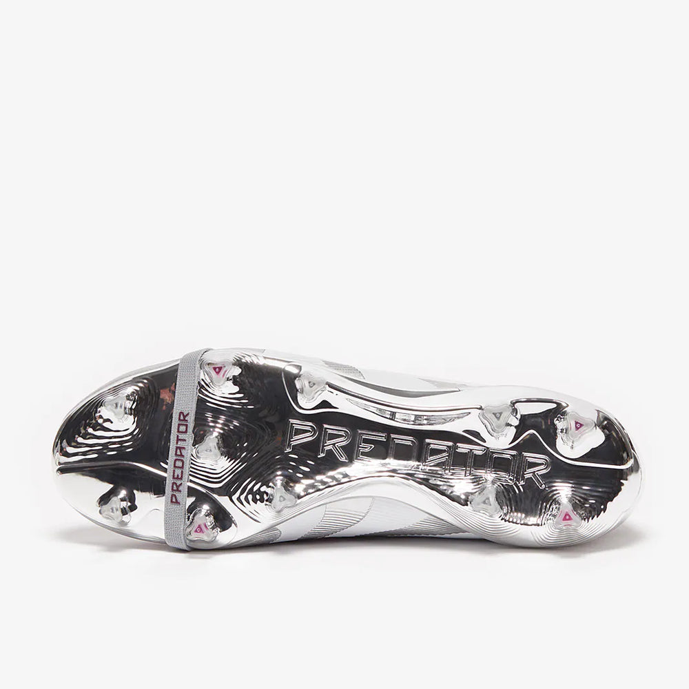 Hunt silverware like Jude wearing adidas Predator Elite Tongue x Bellingham FG football boots in Silver Met/Legacy Burgundy/Maroon. Symbolising the Real Madrid star’s relentless pursuit of trophies, this special-edition “Chrome Dream” colourway features signature JB branding at the tongue, insole, and heel.