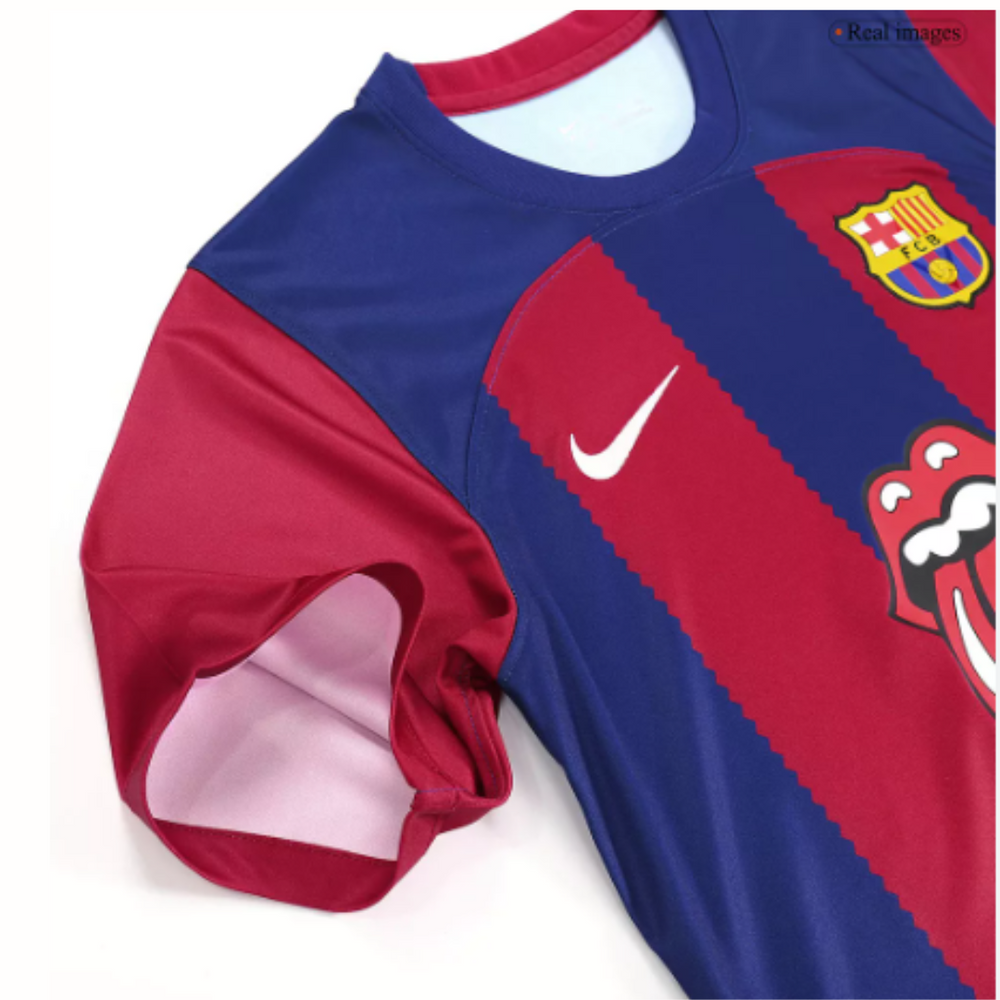 Embrace the harmonious blend of two iconic worlds with the Barcelona x Rolling Stones Home Soccer Jersey 2023/24. This Barcelona Rolling Stones jersey perfectly marries the vibrant spirit of Barcelona FC with the timeless rock vibes of the Rolling Stones.