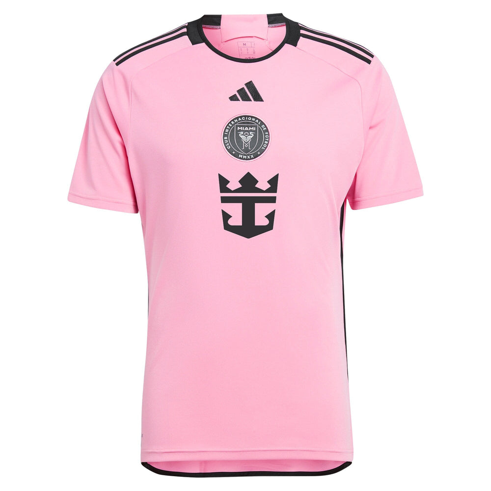 Proud. Passionate. Pink. This adidas Inter Miami CF jersey stands out in the club's signature home colors. Contributing to the clean, classy design, the team badge and 3 Bar Logo move to the center. AEROREADY wicks moisture to keep soccer fans comfortable. The back neck signoff displays the team's aspirational motto, "Freedom to Dream."