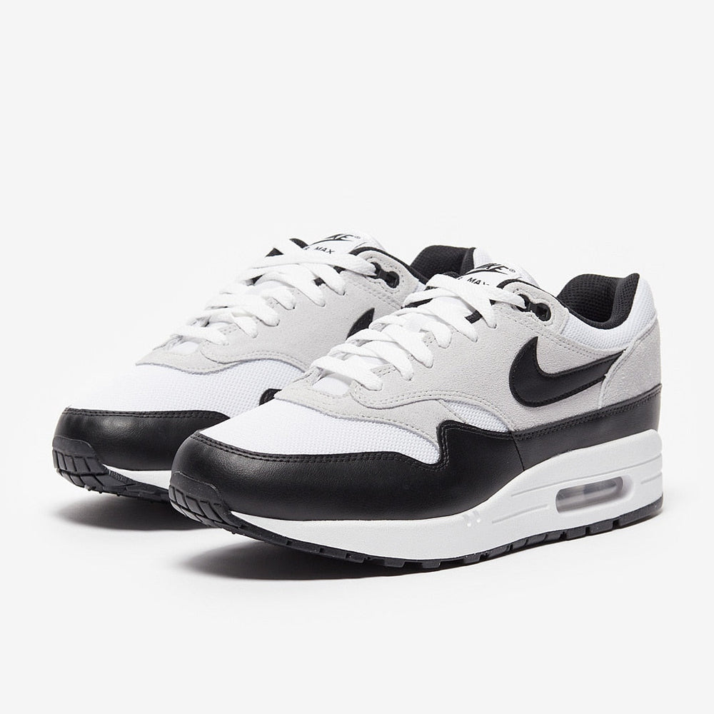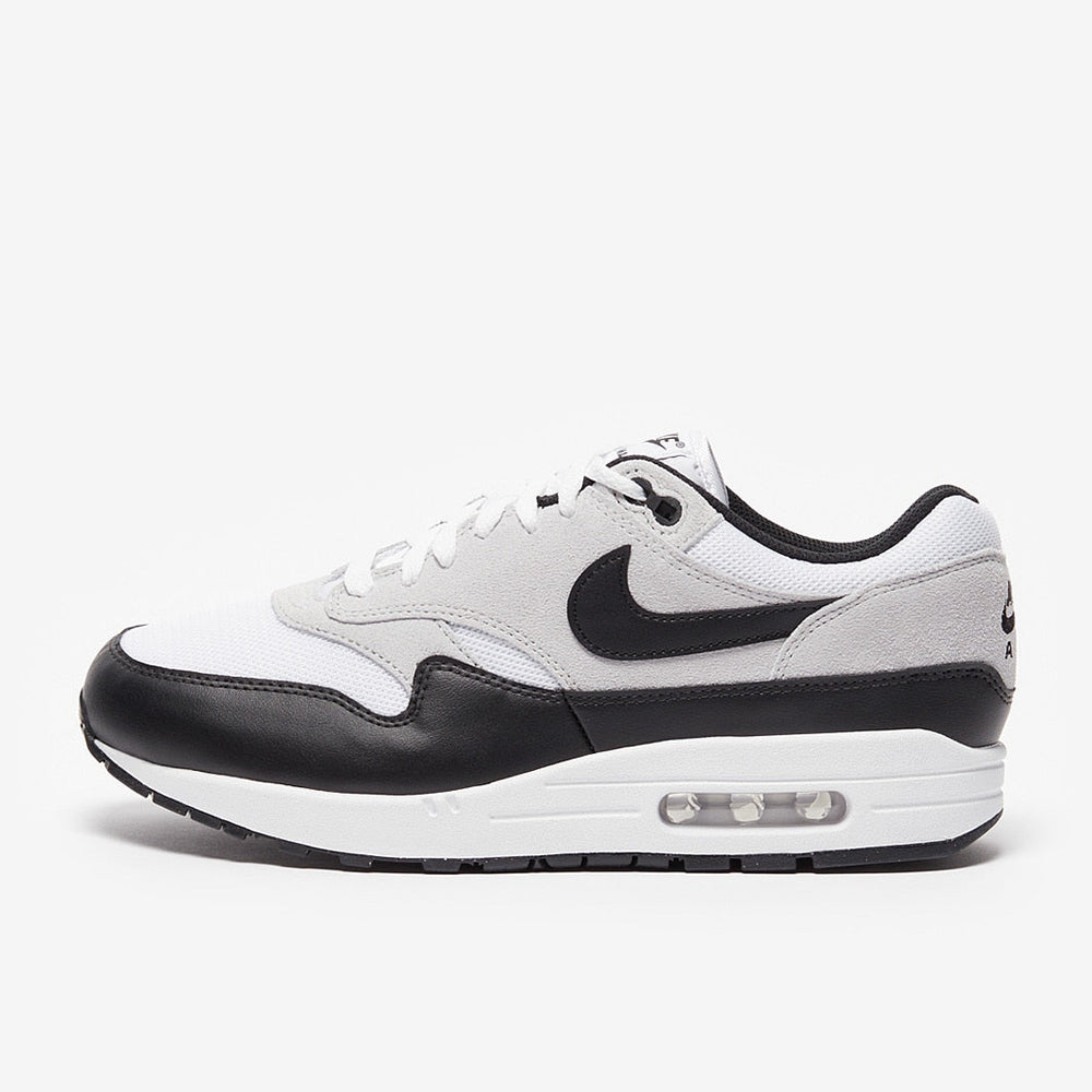 Style up easy with the Nike Sportswear Air Max 1 Ess in White/Black/Pure Platinum, featuring premium leather and a design inspired by the '87 original.